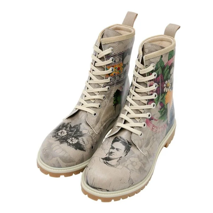 Product: Women Vegan Leather Long Boots - A Flower From The Past Frida Kahlo Design