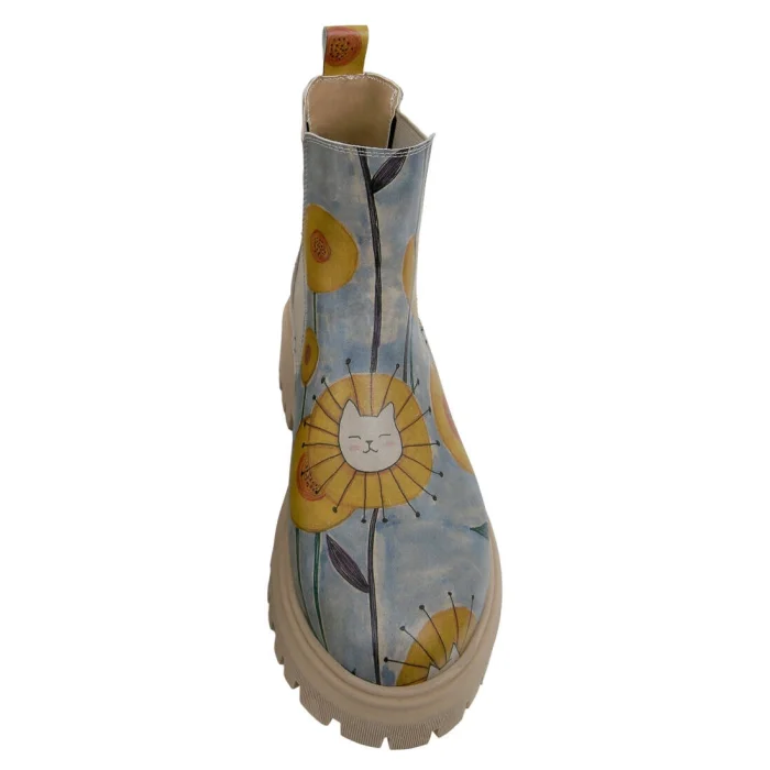Product: Women Vegan Leather Long Boots - Cat Flower Design