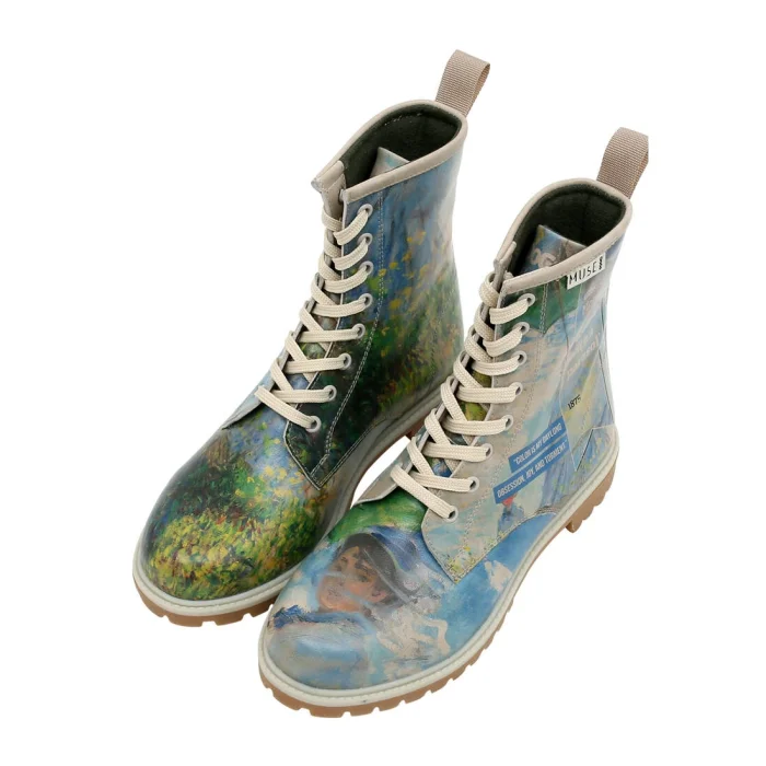 Women Vegan Leather Long Boots - Claude Monet Woman With A Parasol Muse Design
