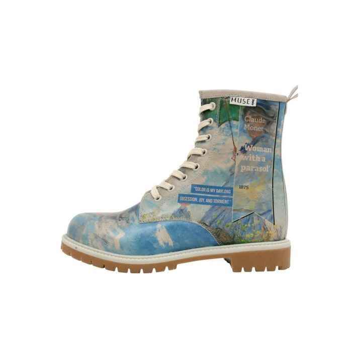 Product: Women Vegan Leather Long Boots - Claude Monet Woman With A Parasol Muse Design