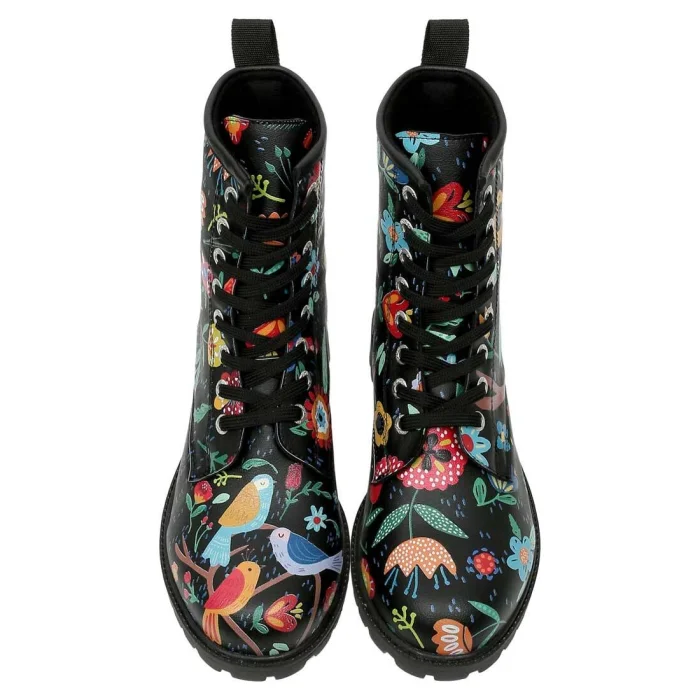 Product: Women Vegan Leather Long Boots - Flowers & Birds Design