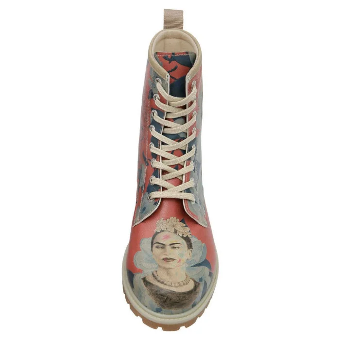 Women Vegan Leather Long Boots - Frida Painting Frida Kahlo Design