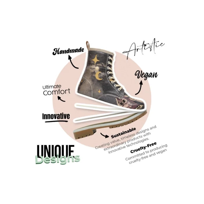 Product: Women Vegan Leather Long Boots - Owls Family Design