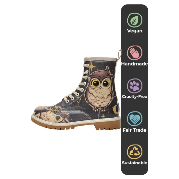Product: Women Vegan Leather Long Boots - Owls Family Design
