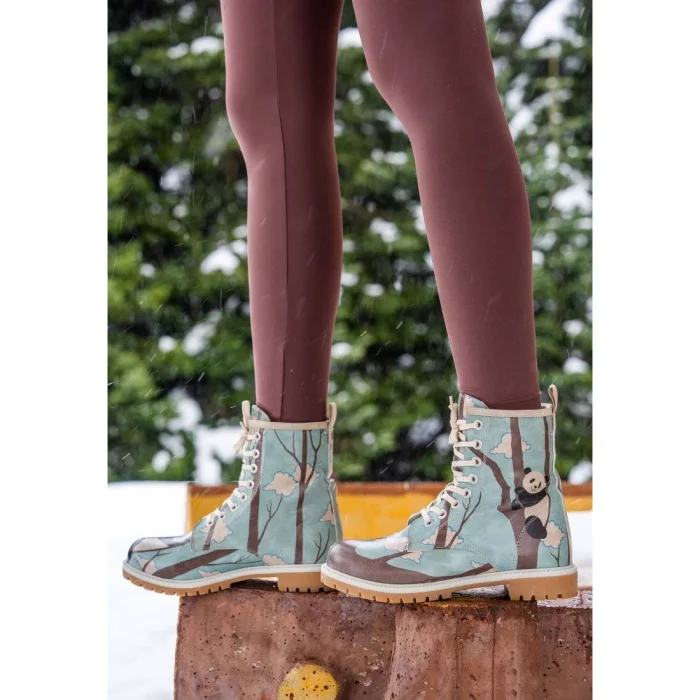 Product: Women Vegan Leather Long Boots - Panda Hug Design