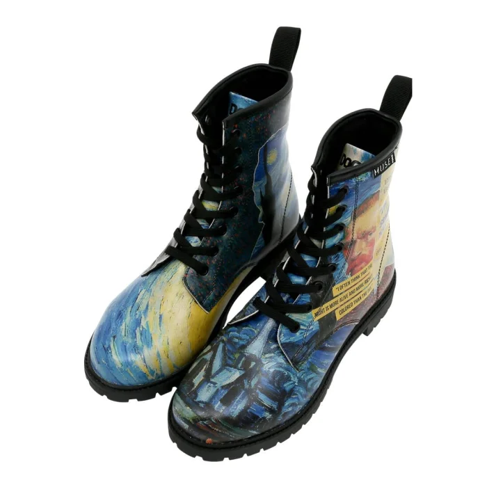 Product: Women Vegan Leather Long Boots - Vincent Van Gogh The Starry Night Collage Muse Design