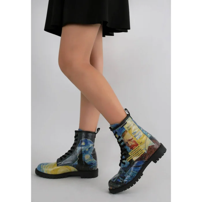 Women Vegan Leather Long Boots - Vincent Van Gogh The Starry Night Collage Muse Design