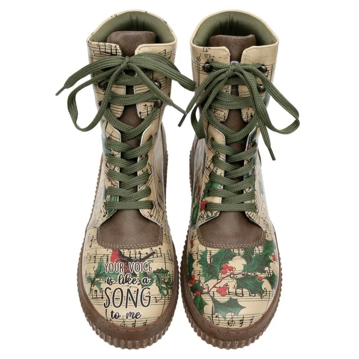 Product: Women Vegan Leather Long Boots - Your Voice Is Like A Song To Me Design