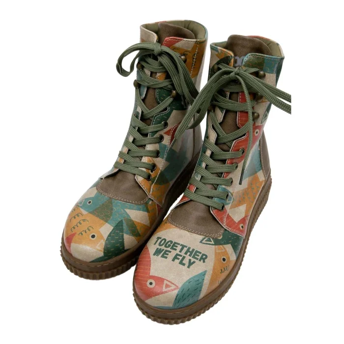 Product: Women Vegan Leather Multicolor Long Boots - Together We Fly Design