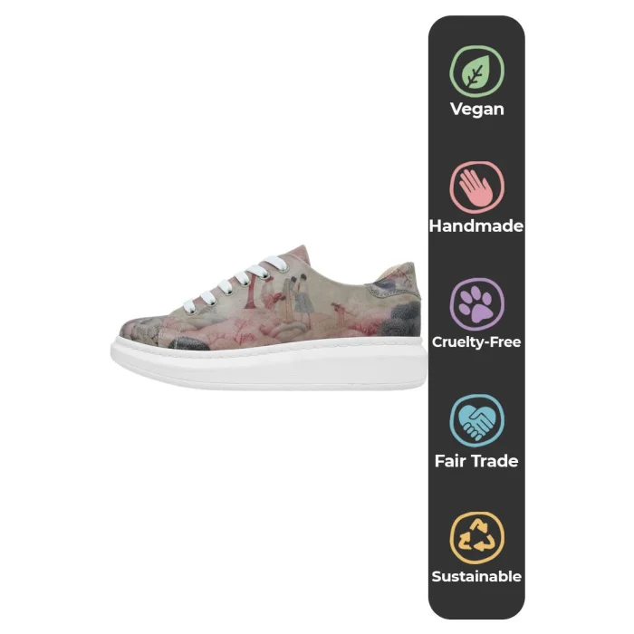 Product: Women Vegan Leather Pink Sneakers - Spring In East Design