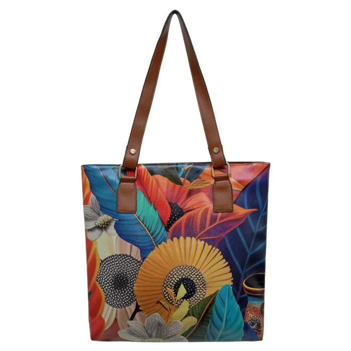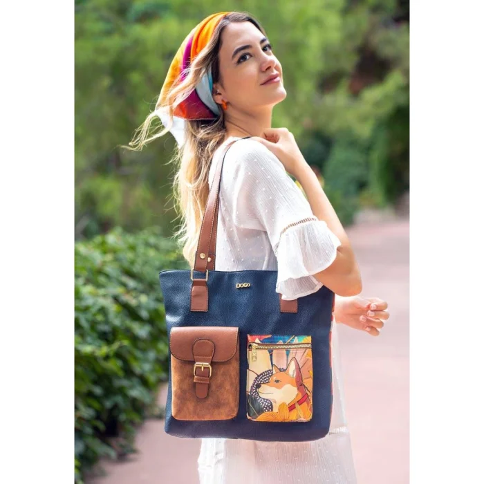 Product: Women Vegan Leather Shoulder Bag - Blooming Dog Design