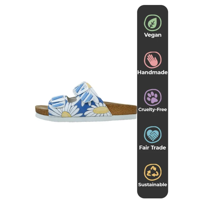 Product: Women Vegan Leather Slippers - Daisy Stripes Design