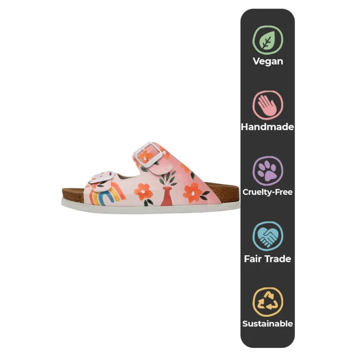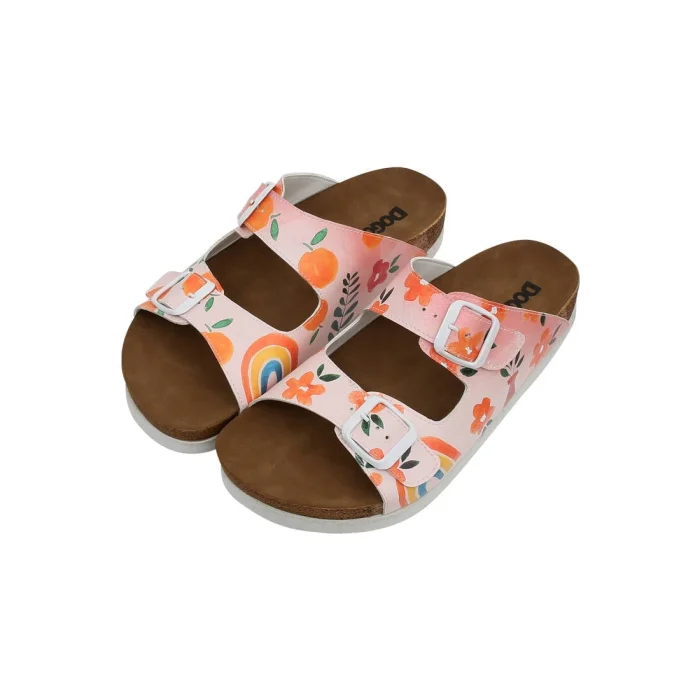 Product: Women Vegan Leather Slippers - Flowers And Fruits Design