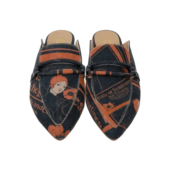 Product: Women Vegan Leather Slippers - Folly Or Saintliness Design