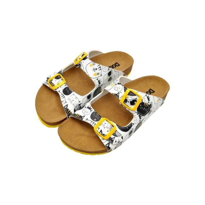 Product: Women Vegan Leather Slippers - Monochrome Cats Design