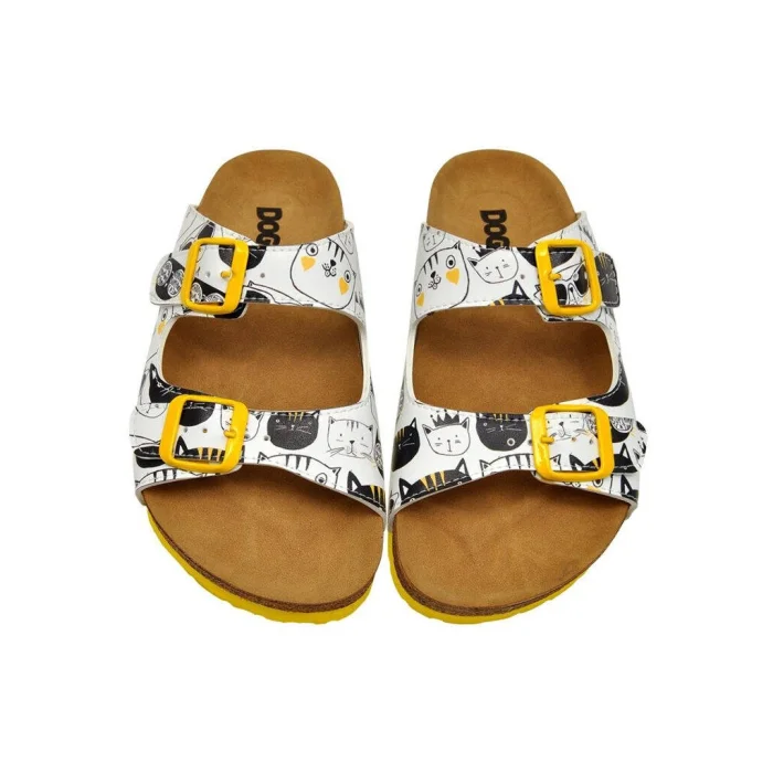 Women Vegan Leather Slippers - Monochrome Cats Design