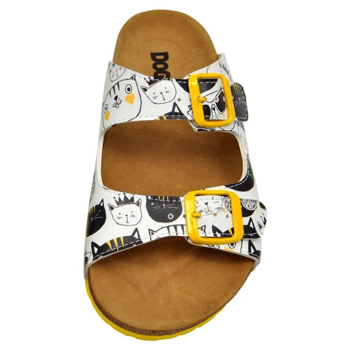 Women Vegan Leather Slippers - Monochrome Cats Design