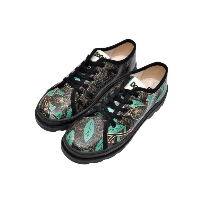 Product: Women Vegan Leather Sneakers - Bird And Leaves Design