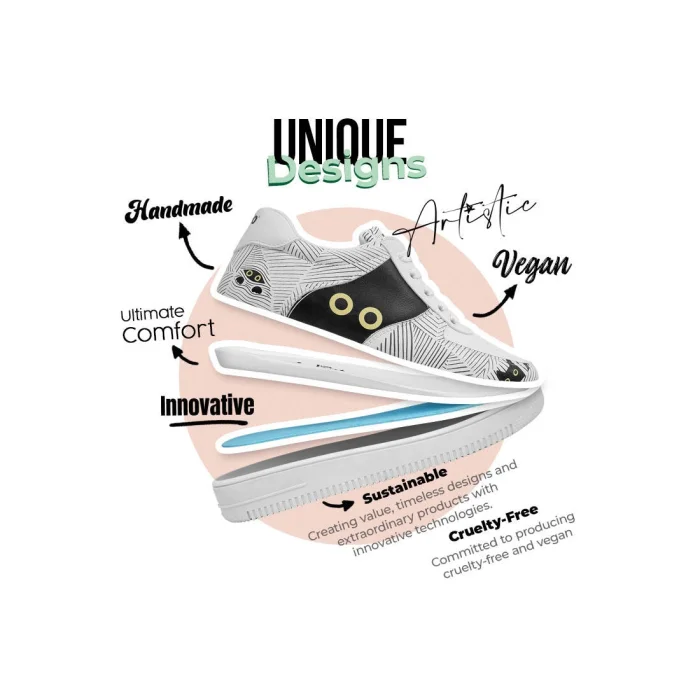 Product: Women Vegan Leather Sneakers - Black Cats Only Design