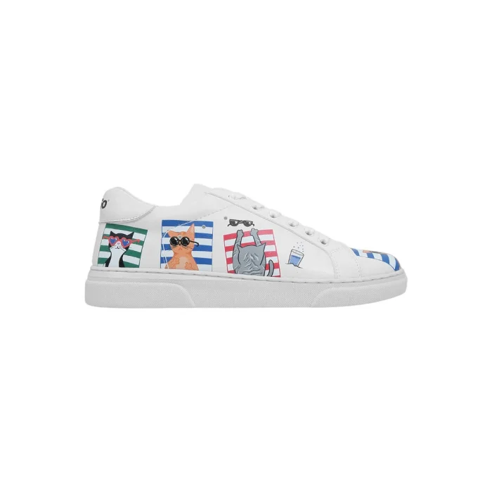 Product: Women Vegan Leather Sneakers - Cats On The Beach Design
