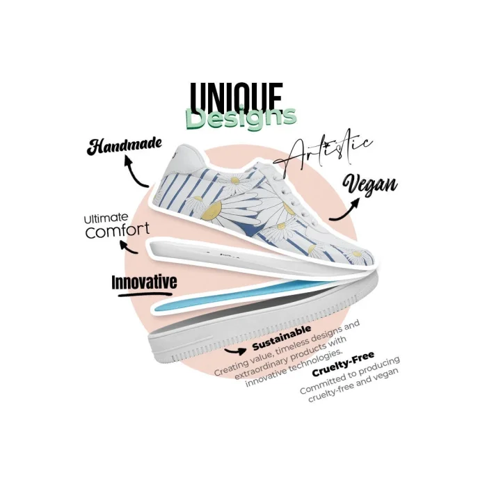 Product: Women Vegan Leather Sneakers - Daisy Stripes Design