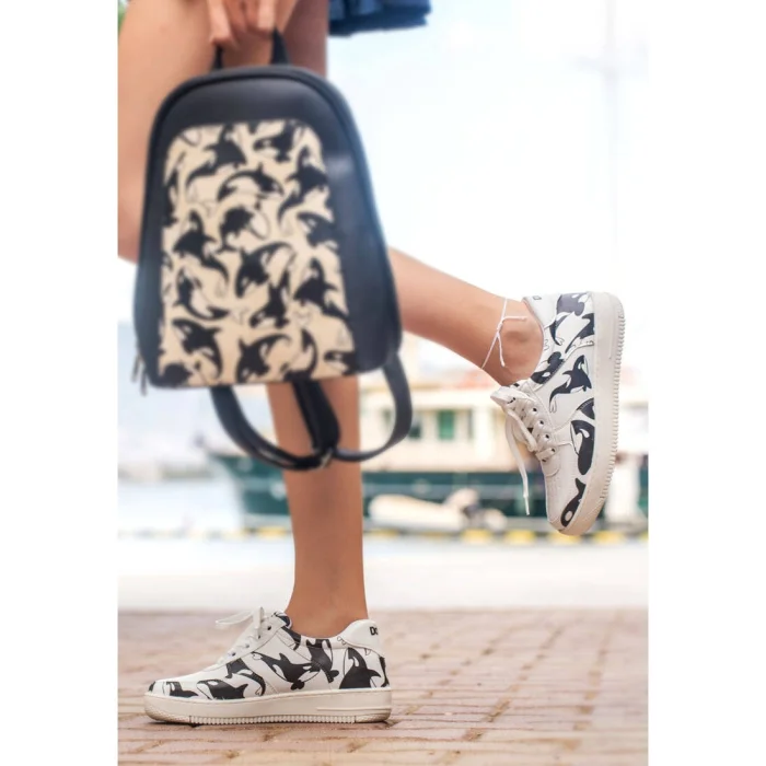 Product: Women Vegan Leather Sneakers - Flowing Orca Design