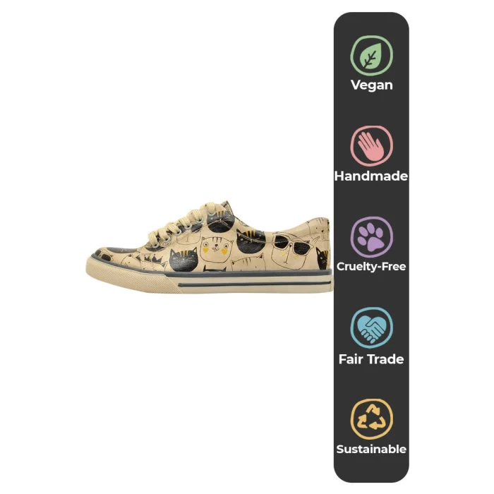 Product: Women Vegan Leather Sneakers - Monochrome Cats Design - Il