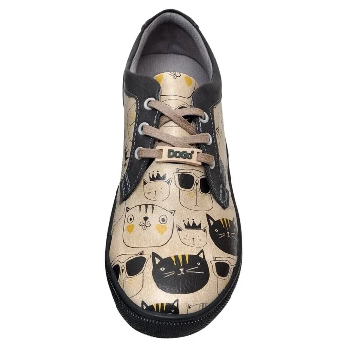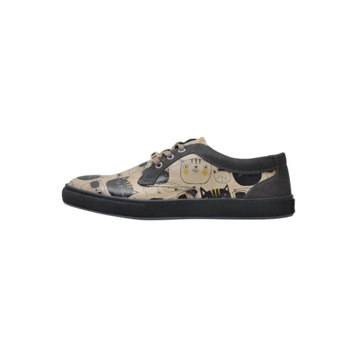 Product: Women Vegan Leather Sneakers - Monochrome Cats Design