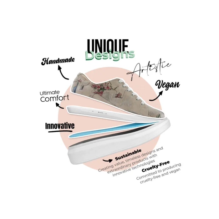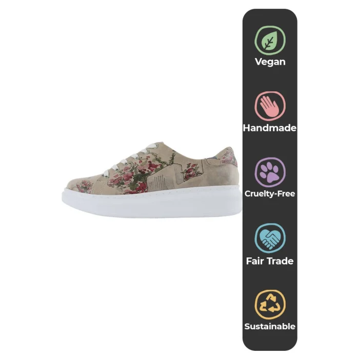Product: Women Vegan Leather Sneakers - Paperflower Design