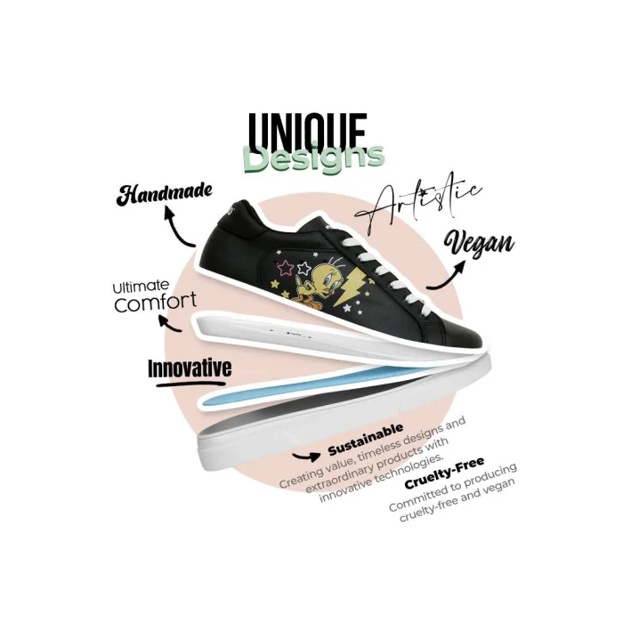 Product: Women Vegan Leather Sneakers - Warner Bros Best Of Tweety And Sylvester Design