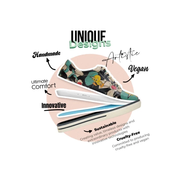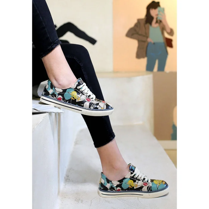 Product: Women Vegan Leather Sneakers - Warner Bros Catch Me If You Can Tweety Design