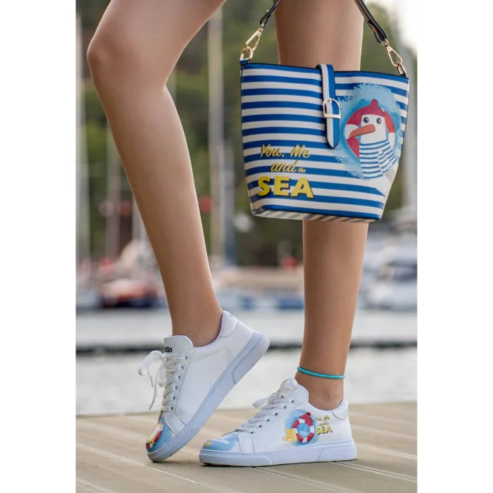 Product: Women Vegan Leather Sneakers - You, Me And The Sea Design