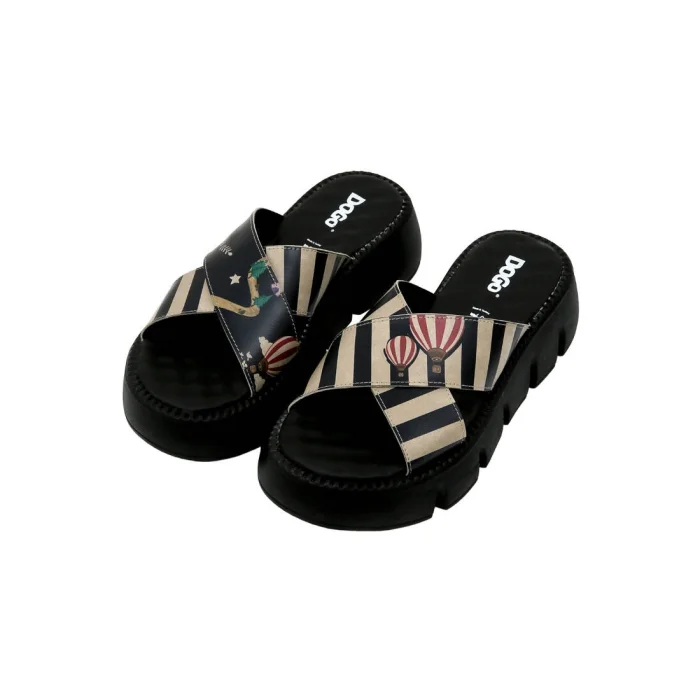 Product: Women Vegan Leather Wedge Slippers - Let's Find A Place To Get Lost Design