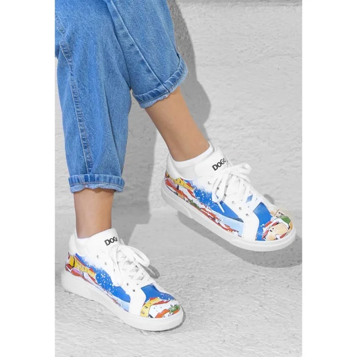 Product: Women Vegan Leather White Sneakers - On The Roofs Design
