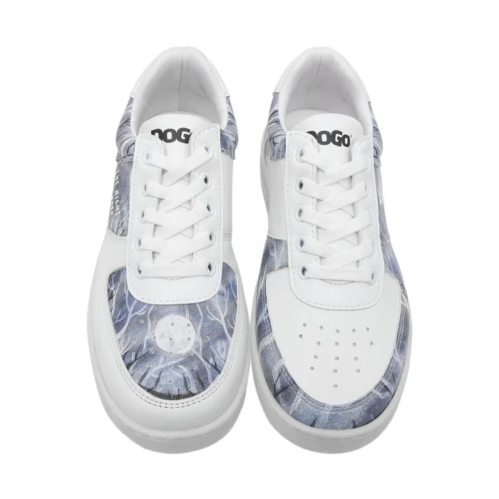 Product: Women Vegan Leather White Sneakers - The Night Is Dark Design