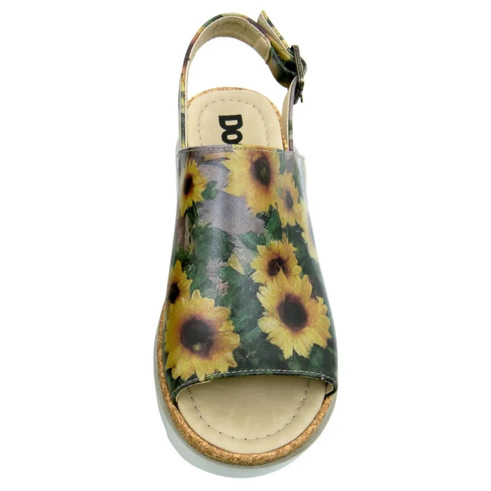 Women Vegan Leather Yellow Wedge Sandals - Sunflowers Design