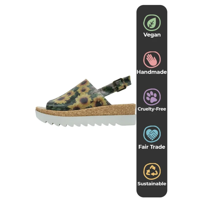 Product: Women Vegan Leather Yellow Wedge Sandals - Sunflowers Design