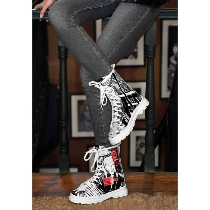 Product: Women Vegan Leather Zipper Long Boots - Edvard Munch The Scream Muse Design - Il