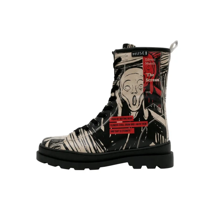 Product: Women Vegan Leather Zipper Long Boots - Edvard Munch The Scream Muse Design