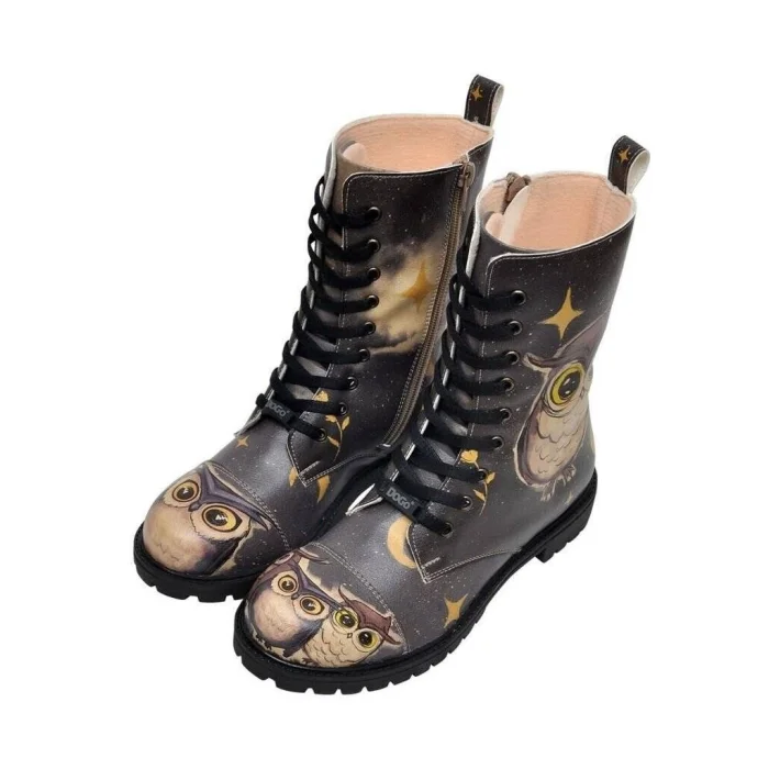 Product: Women Vegan Leather Zipper Long Boots - Owls Family Design