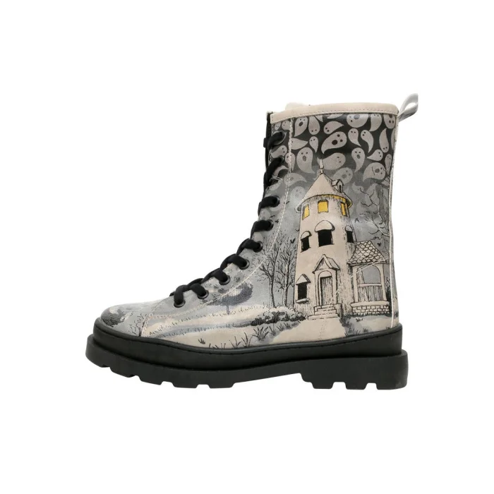 Product: Women Vegan Leather Zipper Long Boots - Spooky Town Design