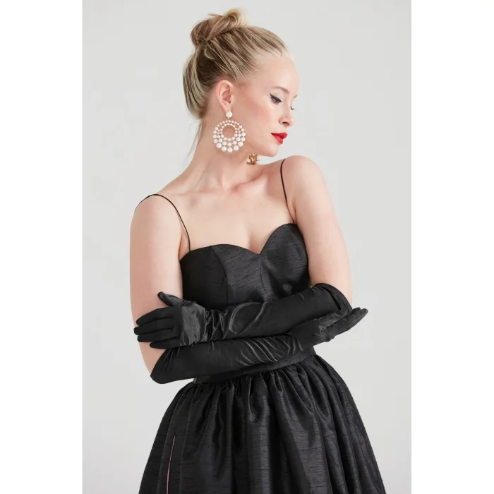 The shantung satin fabric features a shantung texture on one side and a smooth satin finish on the other.