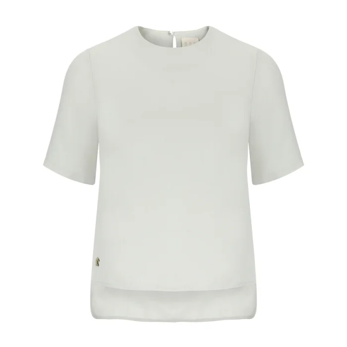 Short sleeve t-shirt blouse, shorter hem at front longer hem at rear