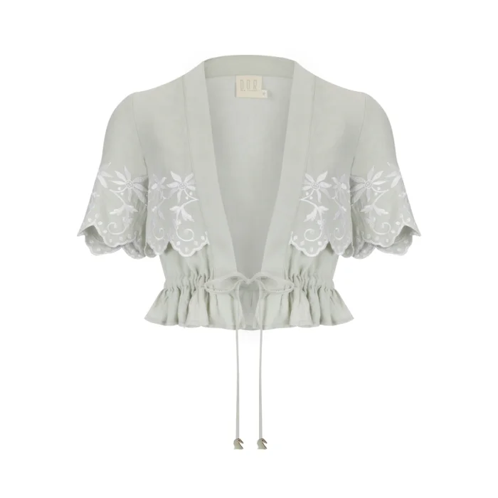 Embroidered crop jacket with front-tie
