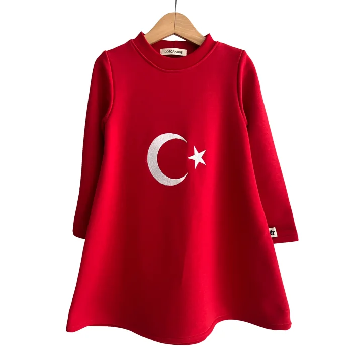 Cotton Combed 3 Thread / Thick Fabric, Special for Republic Day, White Crescent and Star Embroidery / Embroidered, Flounce Skirt Dress