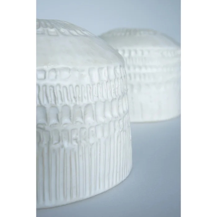 Finished in a soft milky glaze with a gently textured surface — calm, minimal, and quietly expressive.