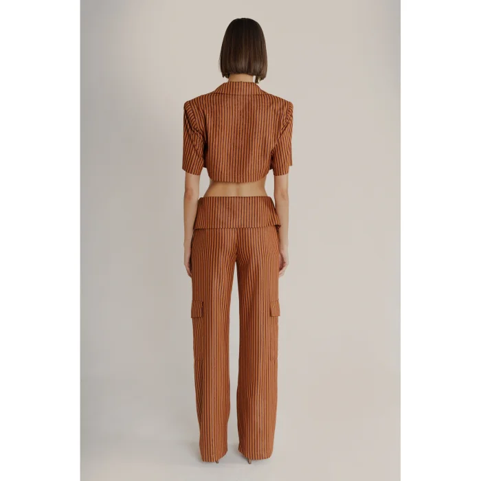 It is specially produced in the Eclectic workshop from shiny line textured fabric.