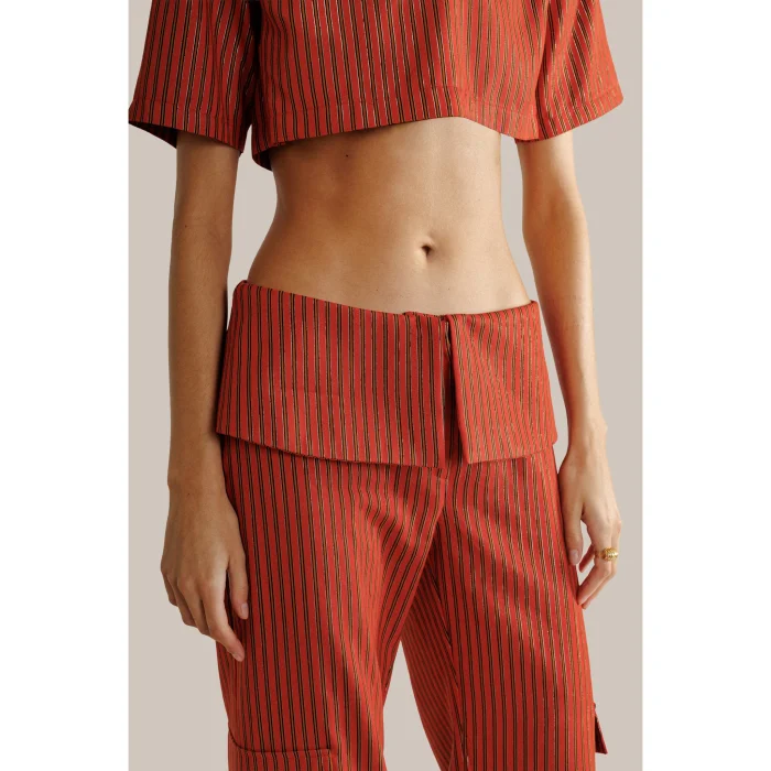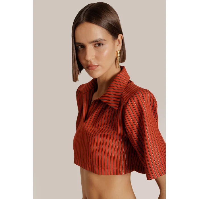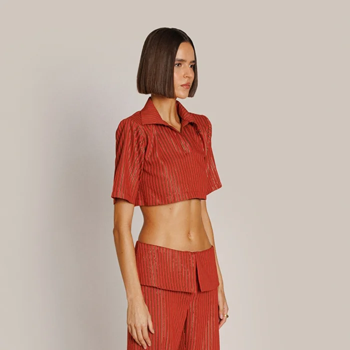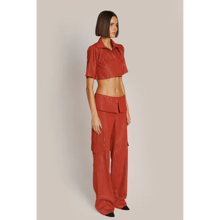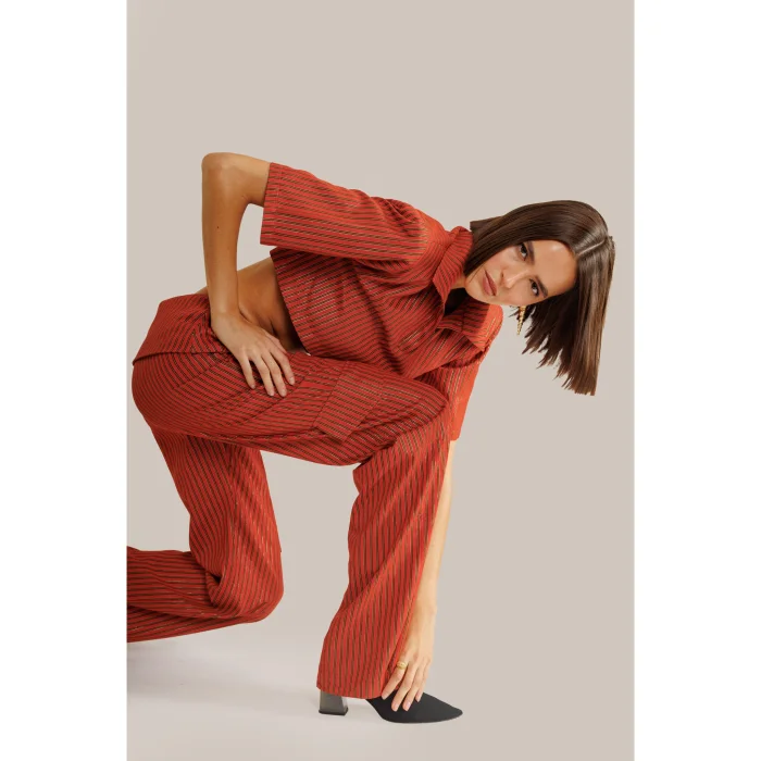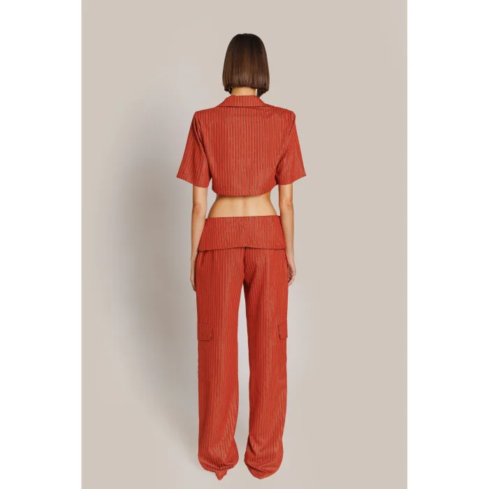 It is specially produced in the Eclectic workshop from shiny line textured fabric.