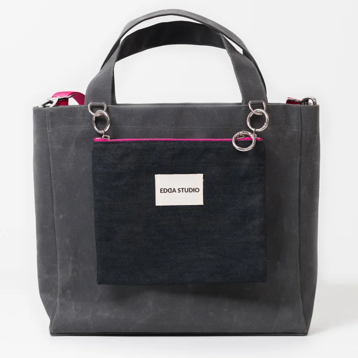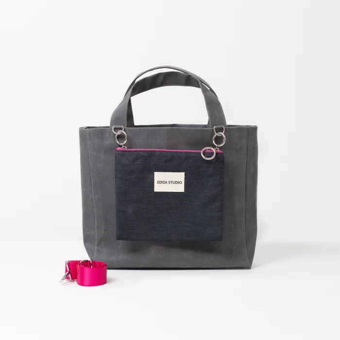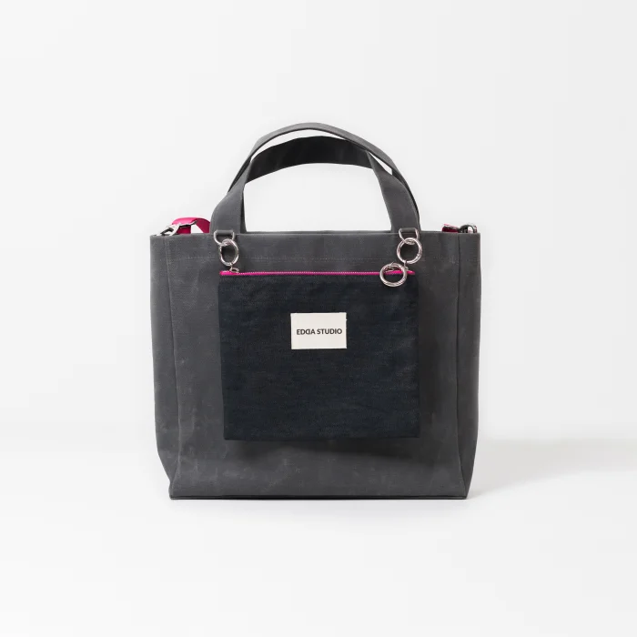 The ALL DAY EVERY DAY Collection is designed to be your perfect companion throughout the day. The bag features a small pocket bag at the front that can be attached to the main canvas bag with accessories or used on its own. Each bag comes with an additional strap, which can be used with either the main canvas bag or the pocket bag. The accessories connecting the small bag to the main bag also allow you to hang your keys, charms, and more, offering endless customization options to showcase your creativity and make the bag truly your own.