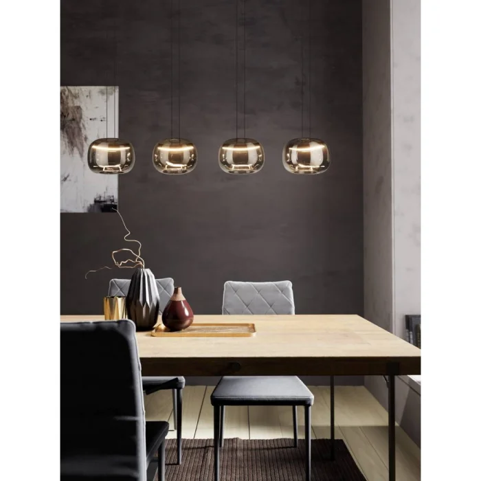 Bulb holder type: LED Maximum wattage: 4X5.8W The bulb is included in the product. Product Height: 150 cm Product Length: 126 cm Product Width: 21 cm Net Weight: 3.48 Kg Main Material: Steel Main Color: Black Glass/Hat Material: Vaporized Glass Glass/Hat Color: Black-Transparent Kelvin: 3000K IP Status: IP20 Switch Type: Wall Switch Product Voltage: 220-240V,50/60Hz